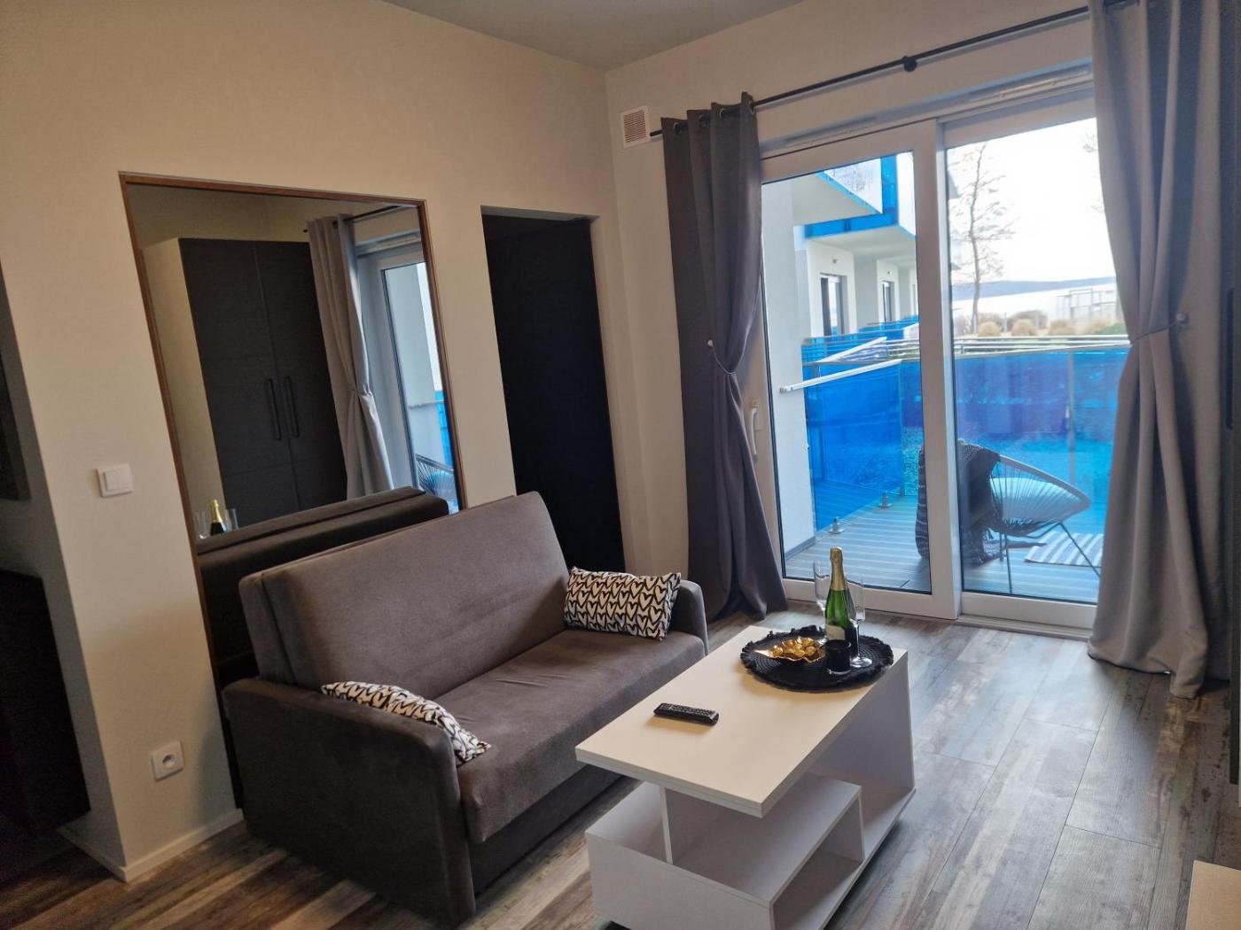 Apartament z 1 sypialnią. This apartment is comprised of 1 living room, 1 separate bedroom and 1 bathroom with a walk-in shower and free toiletries. The well-fitted kitchenette features a stovetop, a refrigerator, a dishwasher and kitchenware. Featuring a terrace with lake views, this apartment also offers air conditioning and a flat-screen TV. The unit offers 2 beds. Apartament - 4 osobowy. Powierzchnia pokoju ok.: 27 mkw.
