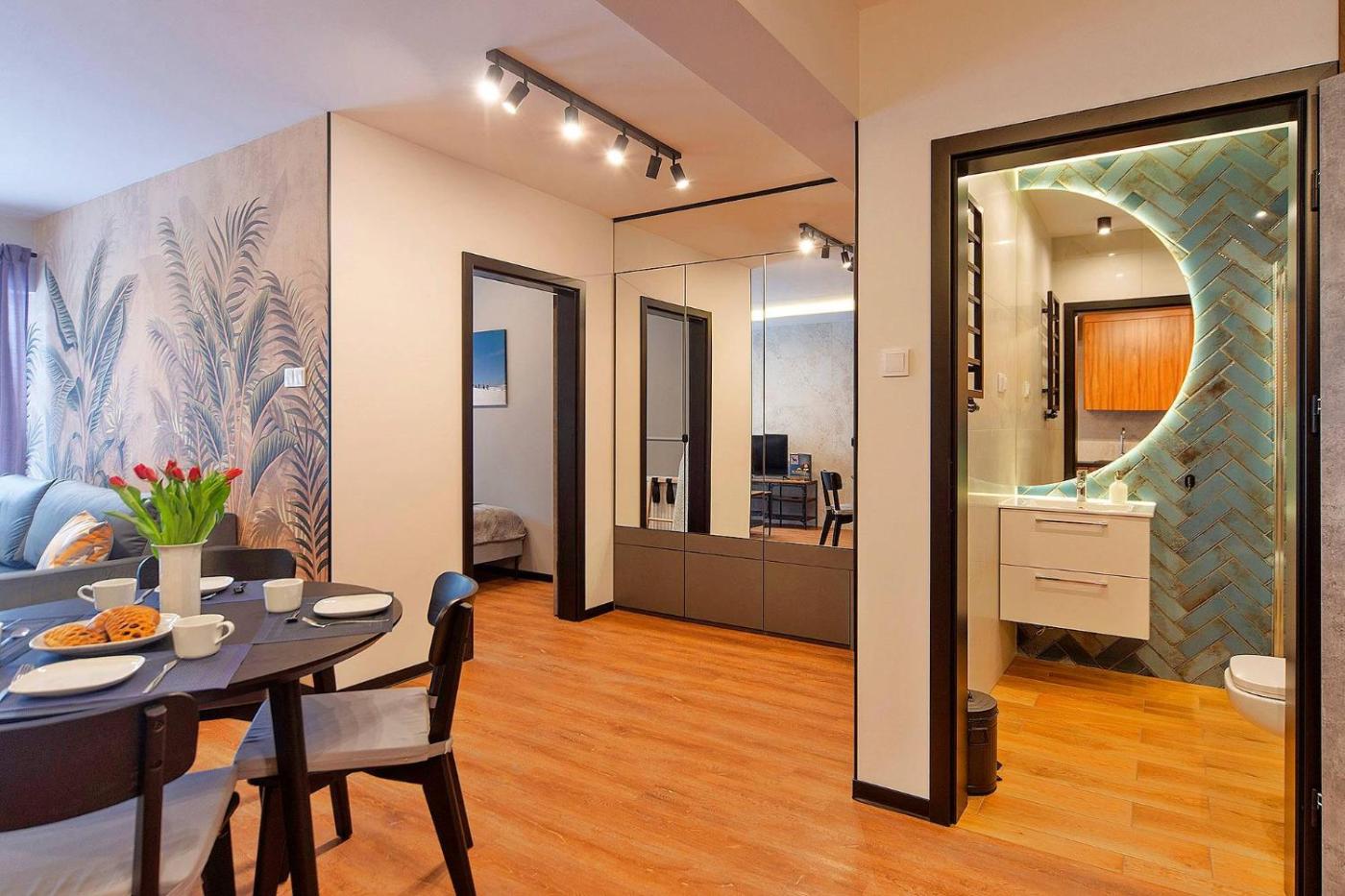 Apartament z 1 sypialnią. Featuring a private entrance, this apartment consists of 1 living room, 1 separate bedroom and 1 bathroom with a shower and a hairdryer. Guests can make meals in the kitchenette that is equipped with a stovetop, a refrigerator, a dishwasher and kitchenware. A seating area with a flat-screen TV, a tea and coffee maker and a balcony are provided in this apartment. The unit offers 2 beds. Apartament - 5 osobowy. Powierzchnia pokoju ok.: 38 mkw.