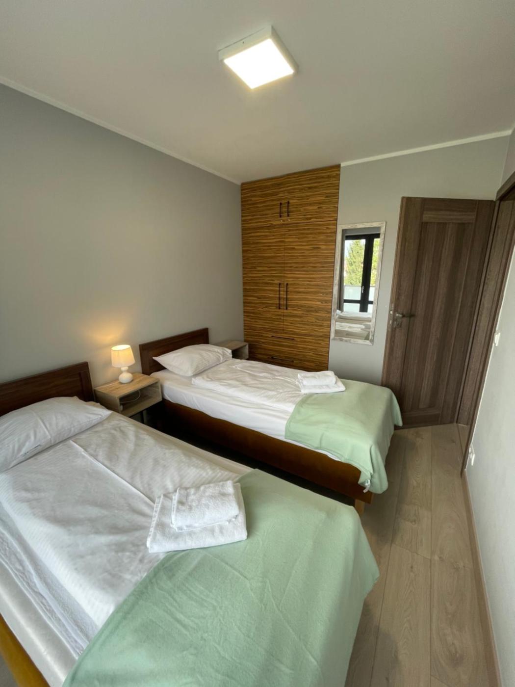 Apartament z 2 sypialniami. Featuring a private entrance, this apartment comprises 1 living room, 2 separate bedrooms and 1 bathroom with a walk-in shower and a hairdryer. Meals can be prepared in the kitchen, which comes with a stovetop, a refrigerator, a dishwasher and kitchenware. The apartment provides a washing machine, soundproof walls, a tea and coffee maker, a flat-screen TV, as well as garden views. The unit offers 4 beds. Apartament - 6 osobowy. Powierzchnia pokoju ok.: 55 mkw.