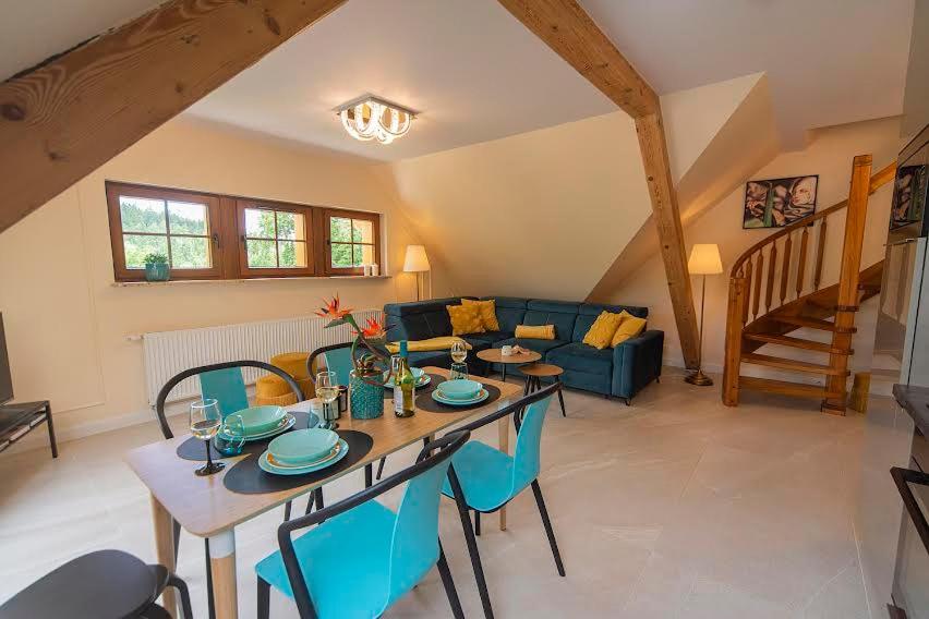 Apartament dwupoziomowy. Boasting a private entrance, this apartment comes with 2 living rooms, 1 separate bedroom and 2 bathrooms with a bath and a shower. Guests can make meals in the kitchenette that features a stovetop, a refrigerator, a dishwasher and kitchenware. The apartment features a flat-screen TV, a washing machine, a tea and coffee maker, a seating area as well as garden views. The unit has 3 beds. Apartament - 7 osobowy. Powierzchnia pokoju ok.: 58 mkw.