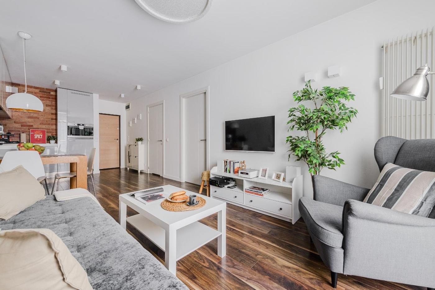 Apartament z 1 sypialnią. This apartment is comprised of 1 living room, 1 separate bedroom and 1 bathroom with a walk-in shower and free toiletries. The well-fitted kitchen features a stovetop, a refrigerator, a dishwasher and kitchenware. The apartment offers a flat-screen TV with cable channels, a washing machine, soundproof walls, a tea and coffee maker as well as city views. The unit offers 2 beds. Apartament - 4 osobowy. Powierzchnia pokoju ok.: 40 mkw. ;